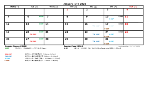 2026年1月至12月課程概覽
