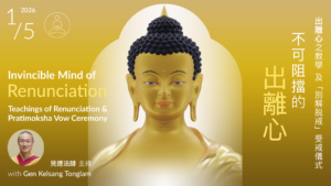 別解脫戒是所有噶當巴佛教徒的基本戒律承諾。作為精神修行人,我們應該明白受戒的重要性。在這特殊活動,見道法師將給予出離心的教學,引導我們以出離心去領受「別解脫戒」,我們將能更迅速地實現長驅直達解脱之境地的善願。